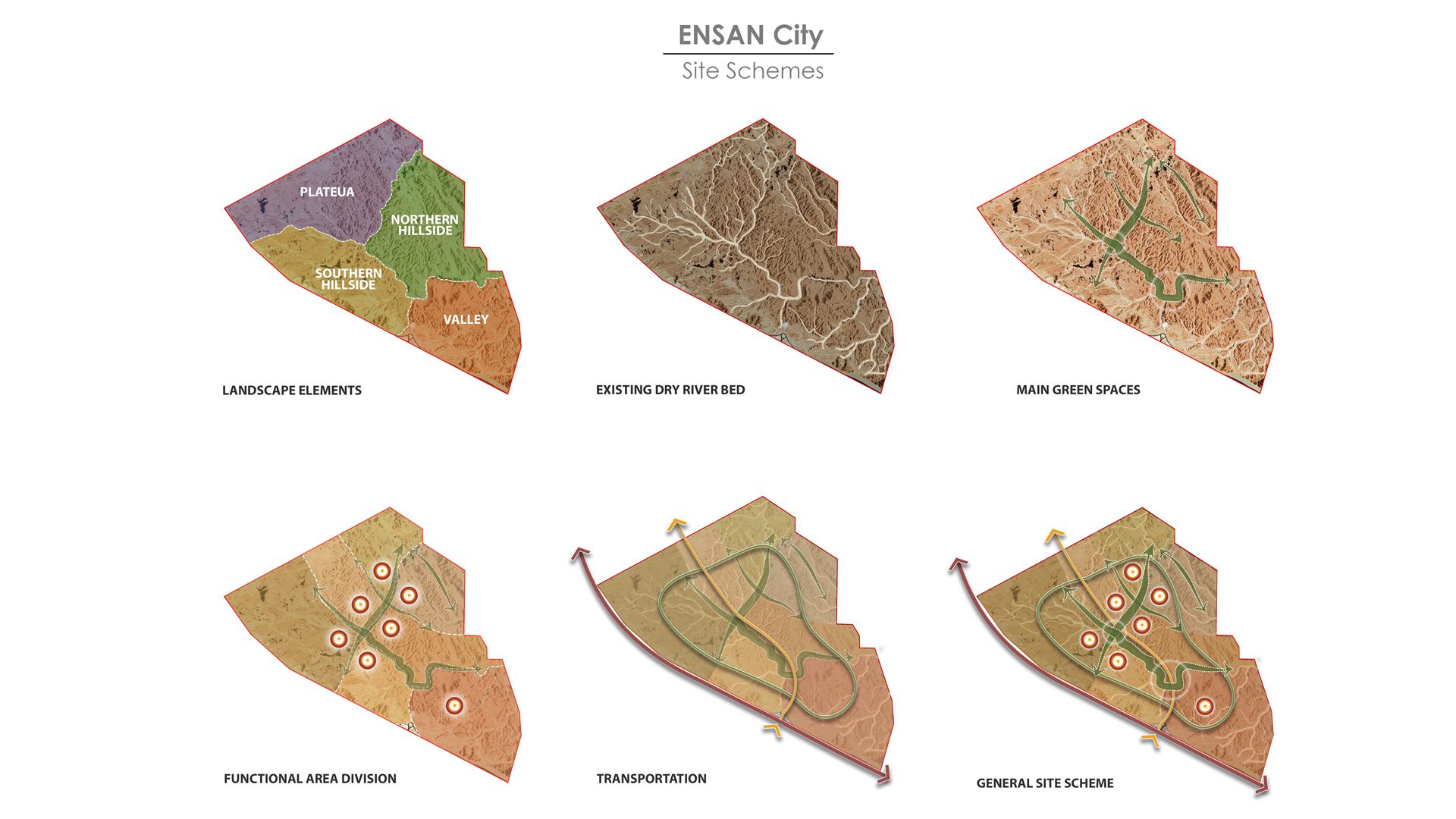 Moreover, the masterplan for ENSAN City situates it as a “City of Knowledge”: a place where culture, education, heritage and innovation meet. The design intention blends local cultural identity with forward‑looking sustainable urbanism, creating a living environment that honours tradition and embraces progress.