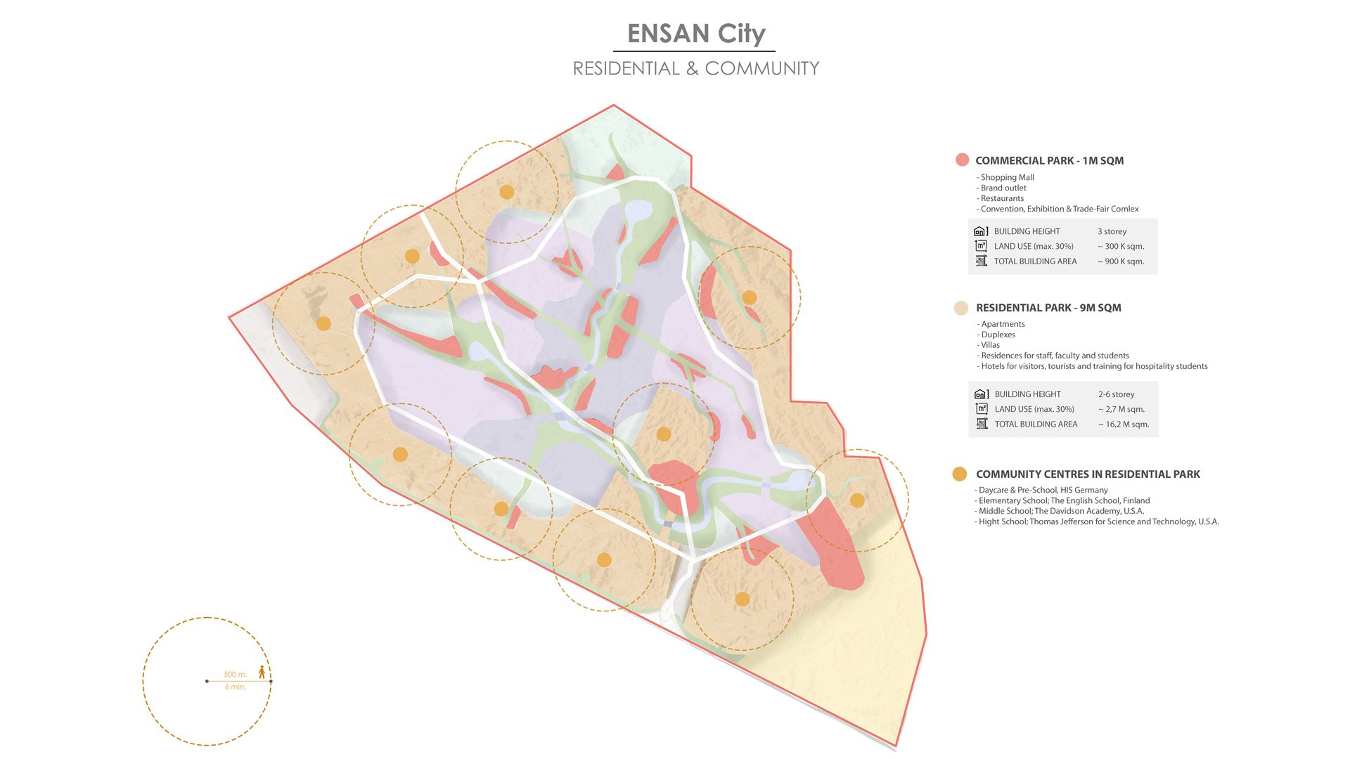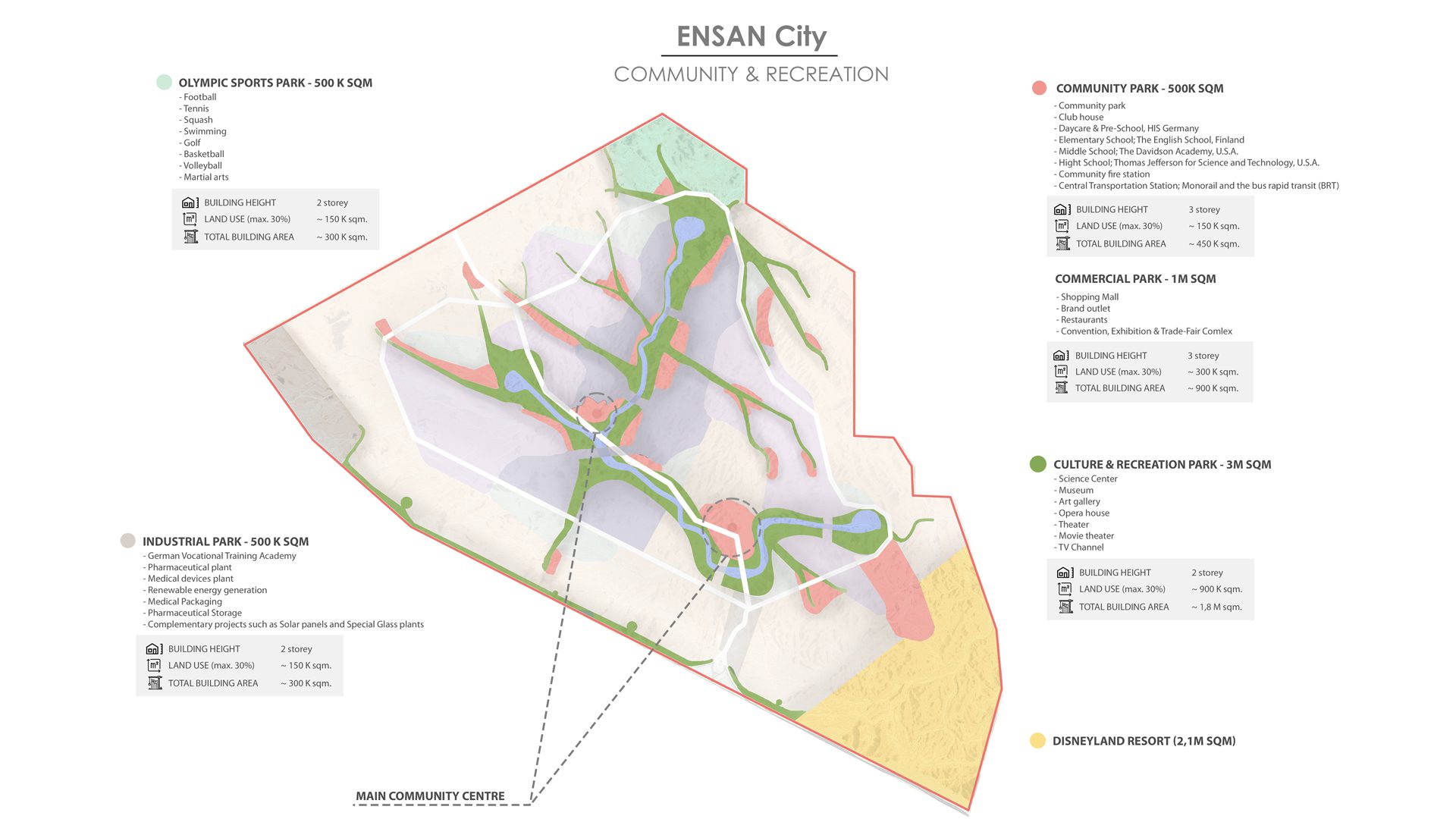 At the core of ENSAN City lies a strong commitment to ecological responsibility. We plan for abundant green zones, energy‑efficient buildings, and innovative energy solutions, aiming to minimise environmental impact and preserve natural resources. The urban design integrates sustainable architecture and infrastructure, combining modern construction with respect for the environment.