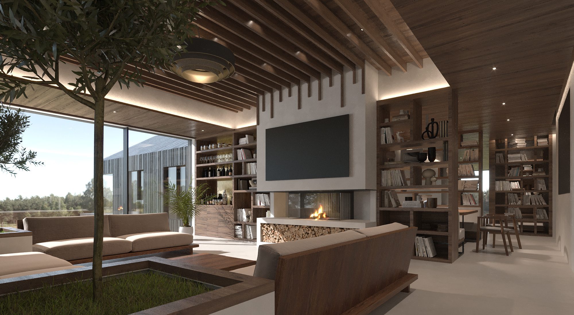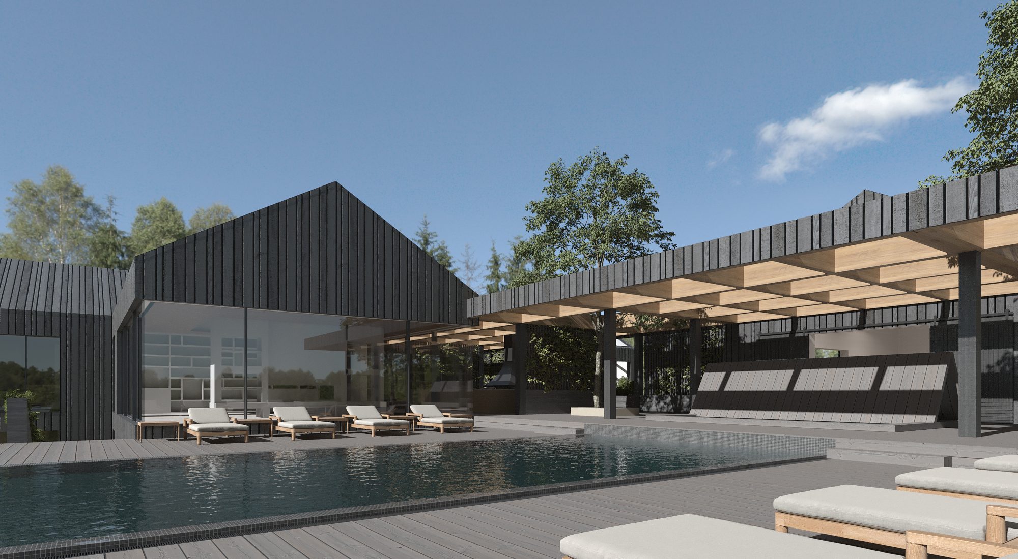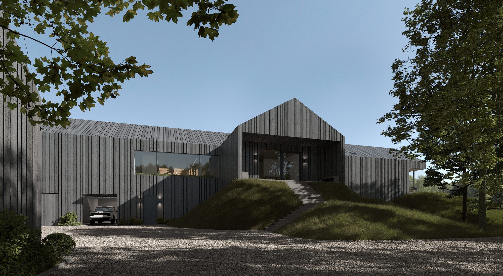 The Farm Residence is a private family estate located in Canada on a vast plot of more than 40 hectares. Our team – architects, visualizers, and interior designers – joined the project at the foundation stage, shaping its architectural character and overall design vision.