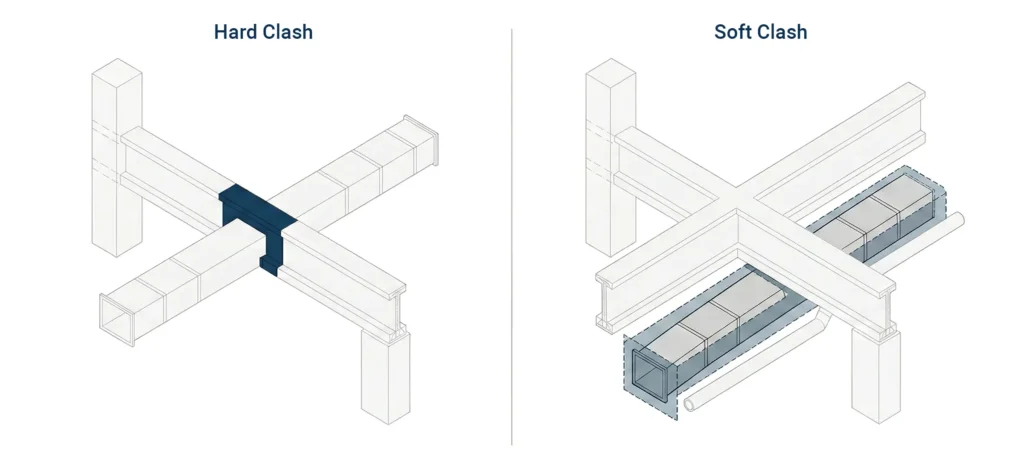 Hard vs soft clashes is one of the most important beginner concepts because it changes how you resolve issues.