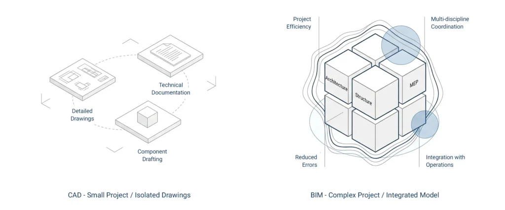 However, as projects grow more complex – especially in commercial buildings and large scale projects – BIM vs CAD becomes a strategic decision.