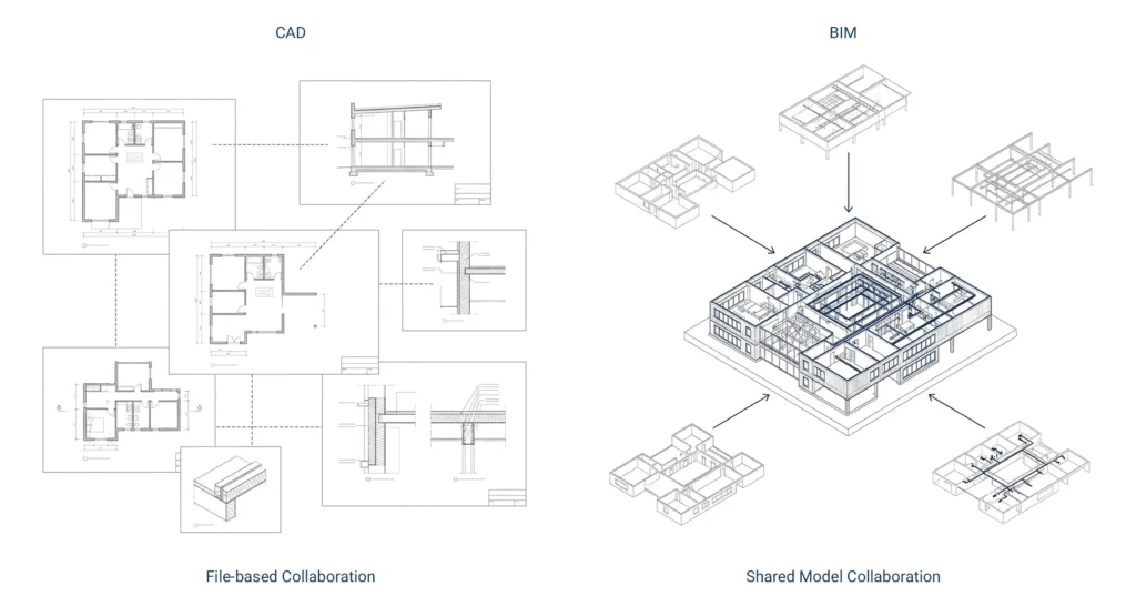 CAD and BIM differ significantly in collaboration features.