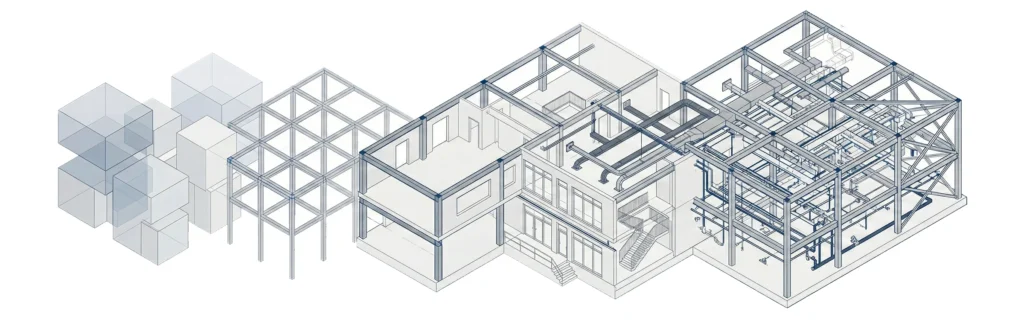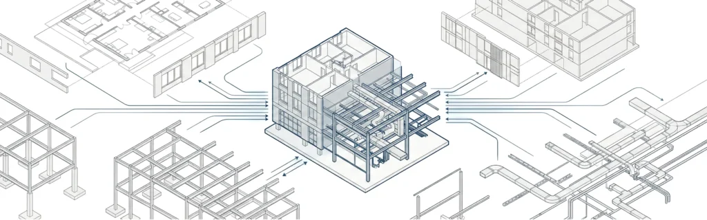 Project stakeholders – including architects, structural engineers, and MEP consultants – work within detailed models.